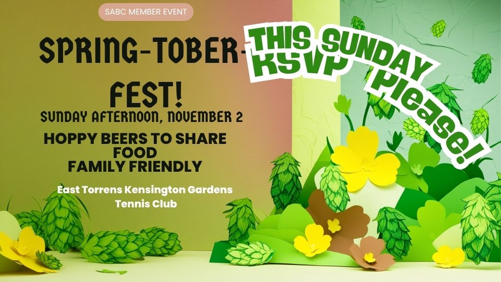 Thank you to the many members who have RSVP’d and are bringing family this Sunday. It’s shaping up to be a great event. There will be a simple BBQ with hand-held food showcasing the beers brewed by the club members in groups using the hops kindly given to us by Kick Back Brewing, Aldinga.